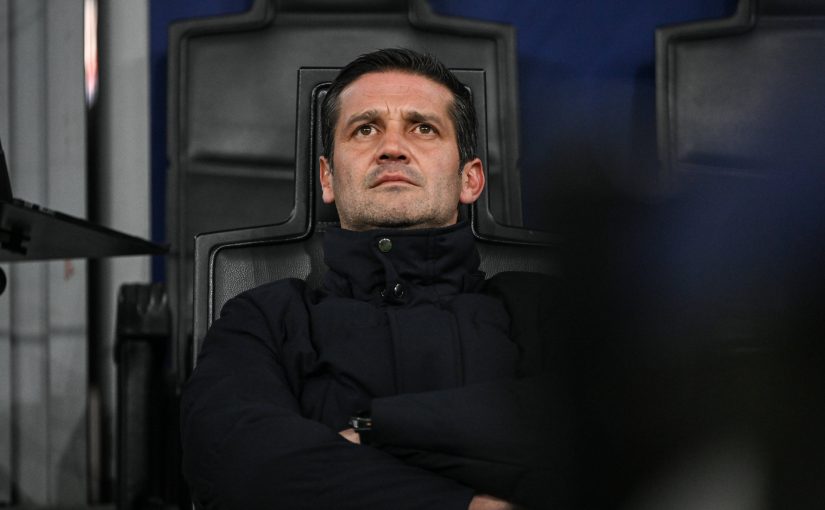 Cristian Chivu duduk di bangku cadangan saat menjamu Liverpool di ajang Liga Champion pada 9 Desember 2025, di Stadion Giuseppe Meazza (IMAGO / IPA Sport).