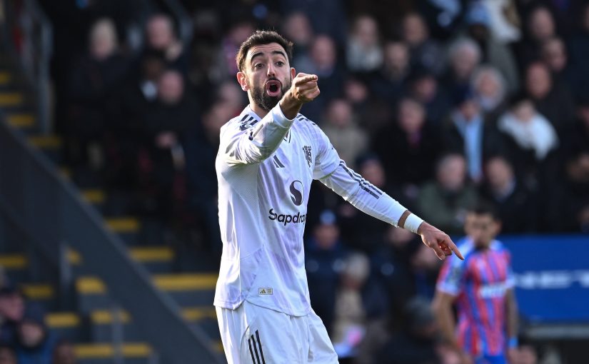 Aksi Bruno Fernandes (Manchester United) saat melawan Crystal Palace di Selhurst Park, 30 November 2025. (IMAGO/Focus Images)